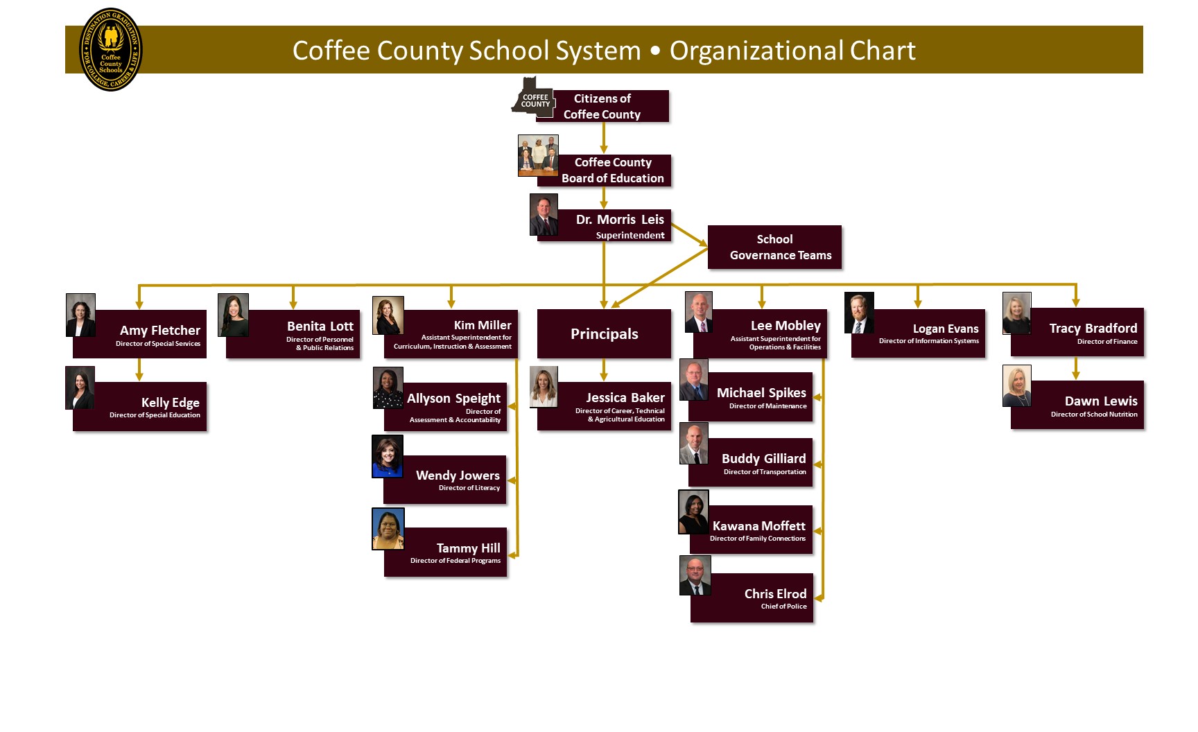 Lee Mobley Assistant Superintendent for Operations and Facilities. Under Lee is Michael Spikes, Director of Maintenance, Then Buddy Gilliard, Director of Transportation, then Kawana Moffett Director of Family Connections, then Chris Elrod Chief of Police.